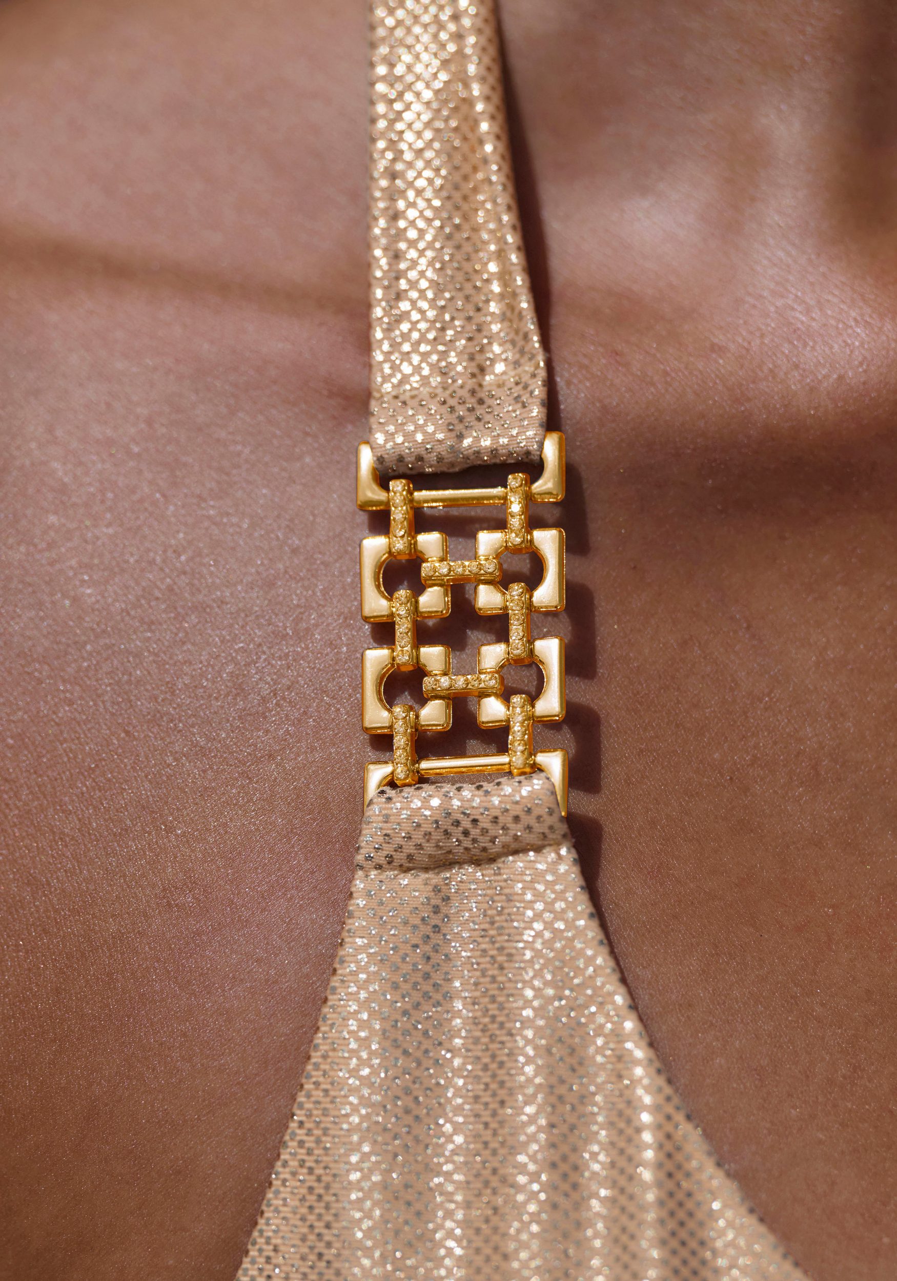 Glamour meets beachwear: This triangle bikini from Lascana impresses with its shiny finish and sparkling decorative buckles embellished with gemstones. The halterneck top with removable soft cups offers optimal fit and support thanks to the ties at the neck and back. The classic-cut bottoms skillfully round off the elegant design of the bikini. Celebrate your beach look in this stunning triangle bikini from Lascana!
