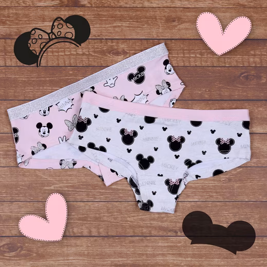 Underwear with a repeating Minnie and Mickey Mouse print.