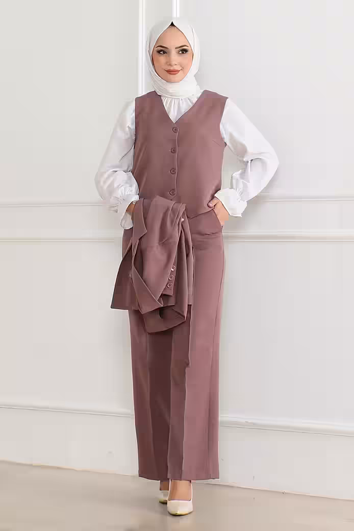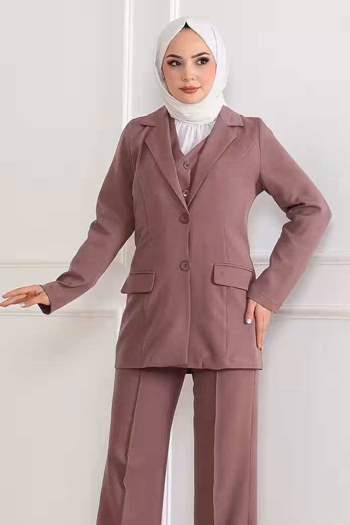 The MODAMİHRAM tunic dress in Taba is part of an elegant three-piece set including a matching jacket. Model 19222 impresses with its versatility and high-quality workmanship, making it ideal for various occasions. Three-piece set consisting of a tunic dress and matching jacket. Color: Taba. Ideal for versatile styling options.