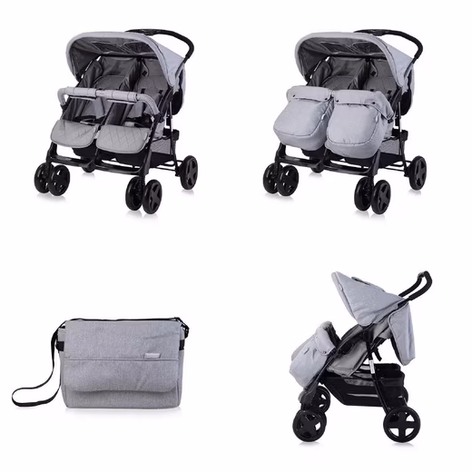 Special features of the Lorelli TWIN twin stroller: changing bag, one-hand folding system, foot cover: