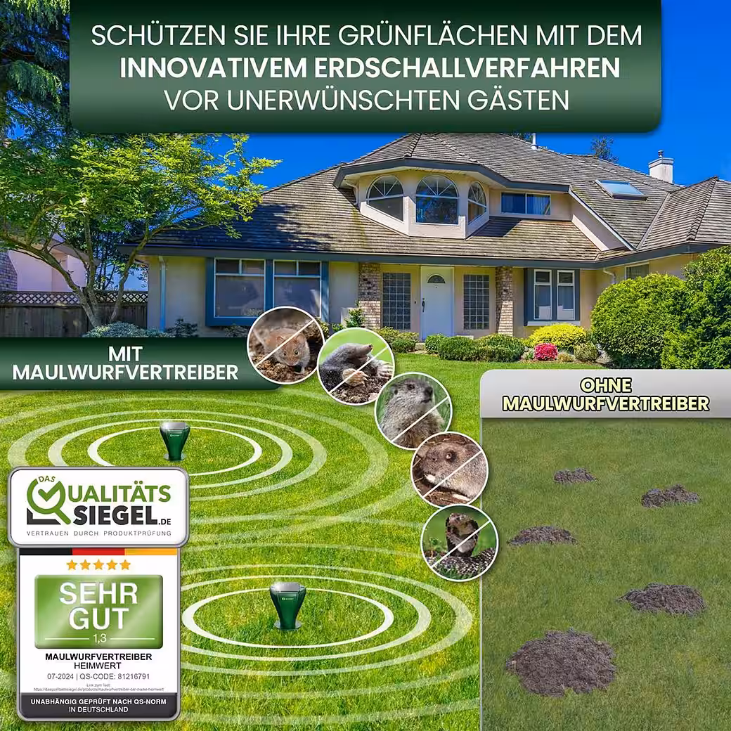 - FAST RESULTS: The HEIMWERT mole repellent technology with AI frequency switching is very efficient: The 3 sonic frequencies change every 24 hours.