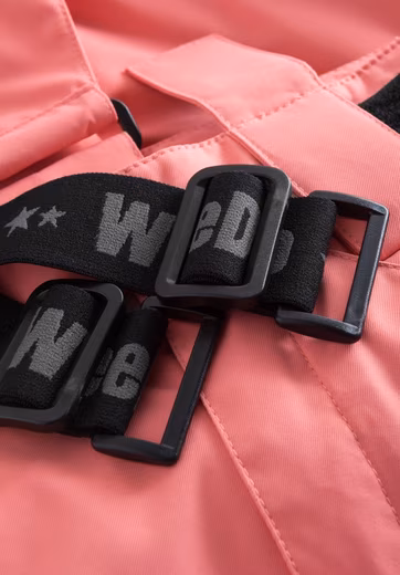 WeeDo snow pants are for the ultimate fun in the snow. Snow guards ensure no snow crumbs get into your pants legs. A special hook attaches these to your snowboard boot. The hems are reinforced, and if you want your snowboard bindings to fit snugly, the pants leg can be raised with a snap fastener. The removable suspenders ensure a perfect fit, and the snow pants are reinforced at the knee for soft landings.