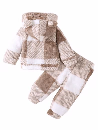 This plaid plush set, specially designed for babies and toddlers, is the perfect choice for winter thanks to its warm materials, cute design, and loving details. It will keep your baby warm and looking adorable during the cold season.