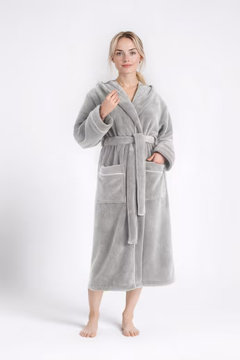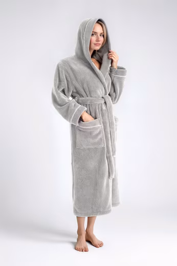 • Practical details: Equipped with a hood, pockets and a tie belt, the bathrobe offers functionality and comfort in one.