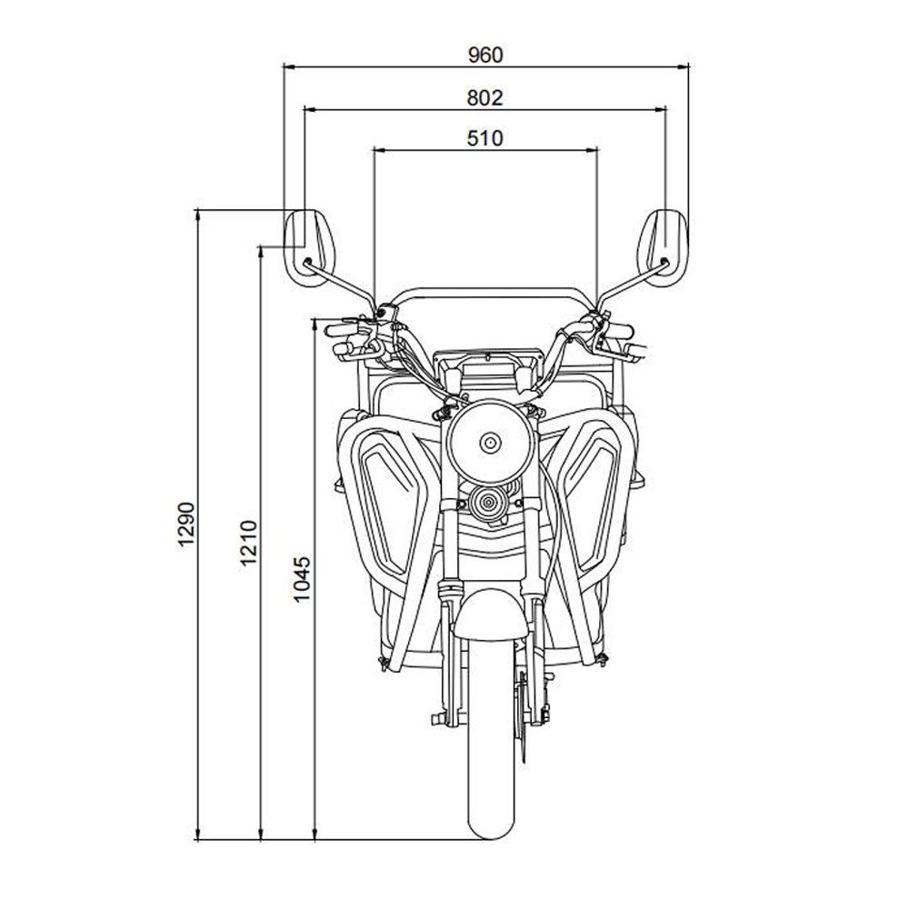 The integrated 60V 20Ah lead-acid battery provides a range of up to 60 km and can be conveniently charged at any standard 230V household outlet. LED lighting ensures good visibility, while a front disc brake and rear parking brake guarantee safe handling. The sturdy 3.00×12 tires offer reliable grip even under heavy loads.