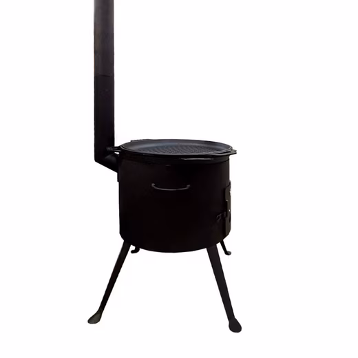 Utschak set with cast iron kazan (15 liters), Utschak with chimney and push iron