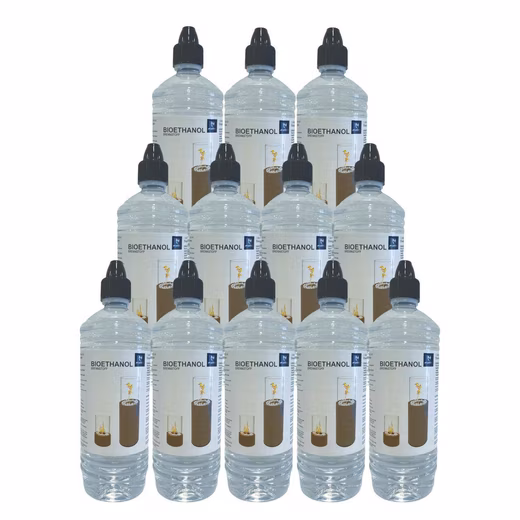 - Contents = 12 x 1 liter of bioethanol in a transparent bottle with “push & turn” closure and practical dosing tip (see photos).