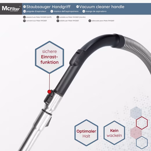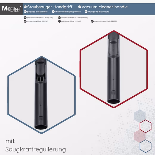 > McFilter Vacuum Cleaner Tube Handle, Ø 35mm, Accessories suitable for Miele S8340, S8360, S8730 Vacuum Cleaner, ergonomically shaped, with snap-in function & suction air regulation <