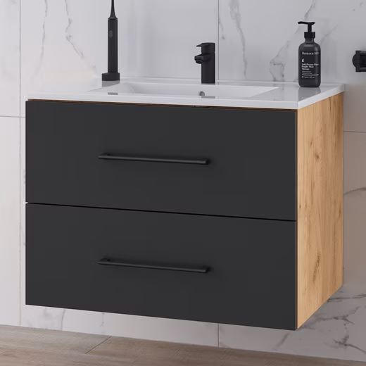 Our ceramic washbasin is not only a real eye-catcher in your bathroom, but it’s also easy to clean. This vanity unit also boasts two spacious drawers, offering plenty of room for your toiletries. Thanks to the soft-close mechanism, opening and closing the drawers is quiet, ensuring a peaceful start to your day.
