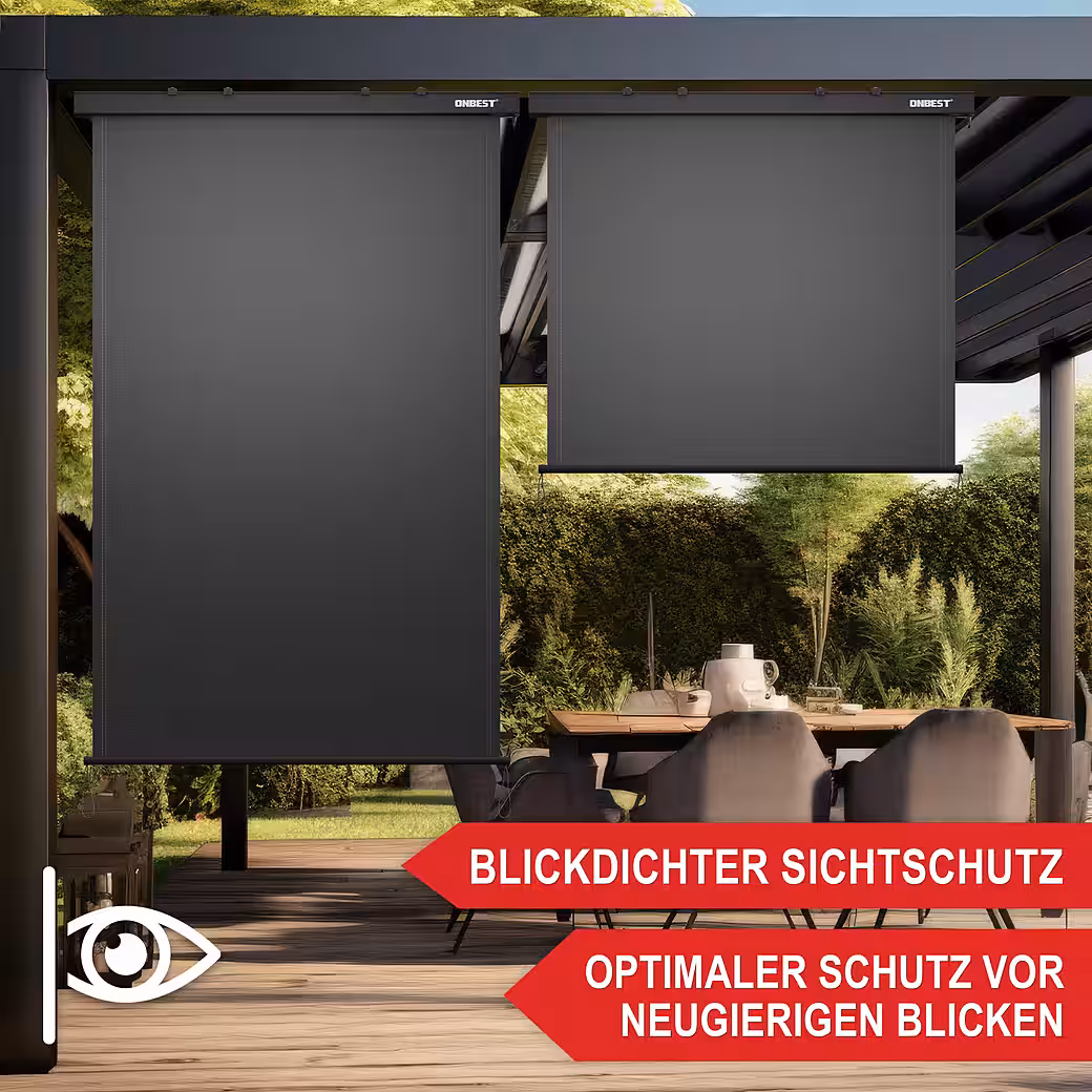 Trust in the proven ONBEST brand quality and enjoy stylish privacy and sun protection with the ONBEST vertical awning!