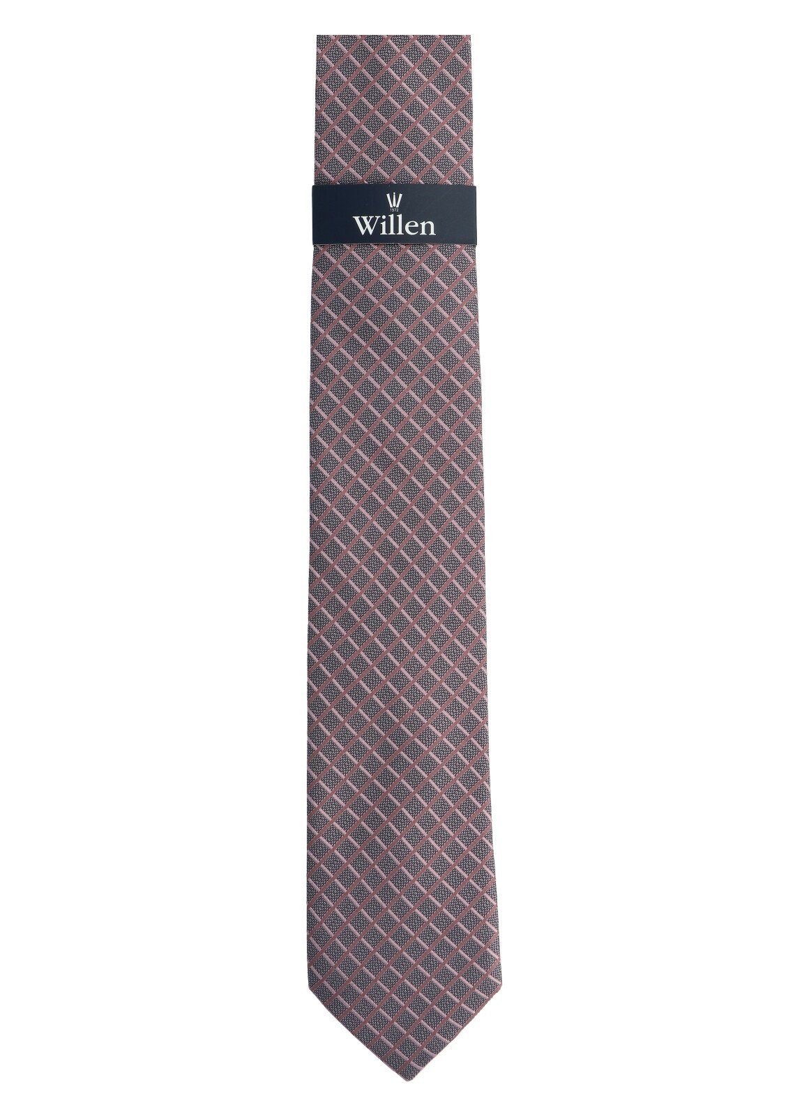 Product details: This item features a finely structured, geometric all-over design with a grid look. The special weave creates vibrant accents, giving the design its mottled gray shadow effect. Material description: These high-quality Willen ties not only impress with their 100% silk designs, they are also hand-finished using traditional techniques. The centerpiece of the tie is the interlining, brushed on both sides, perfectly matched to the silk fabric in both weight and cut. Embedded in a delicate viscose fabric, the long lining adds an additional level of quality to the Willen tie. The three-layer component gives the tie volume and elasticity, ensuring minimal creasing and optimal knot stability. A self-designed passantino adorns the elastic longitudinal seam of the Willen tie. * Tie 6.5 cm * 100% silk * High-quality traditional craftsmanship