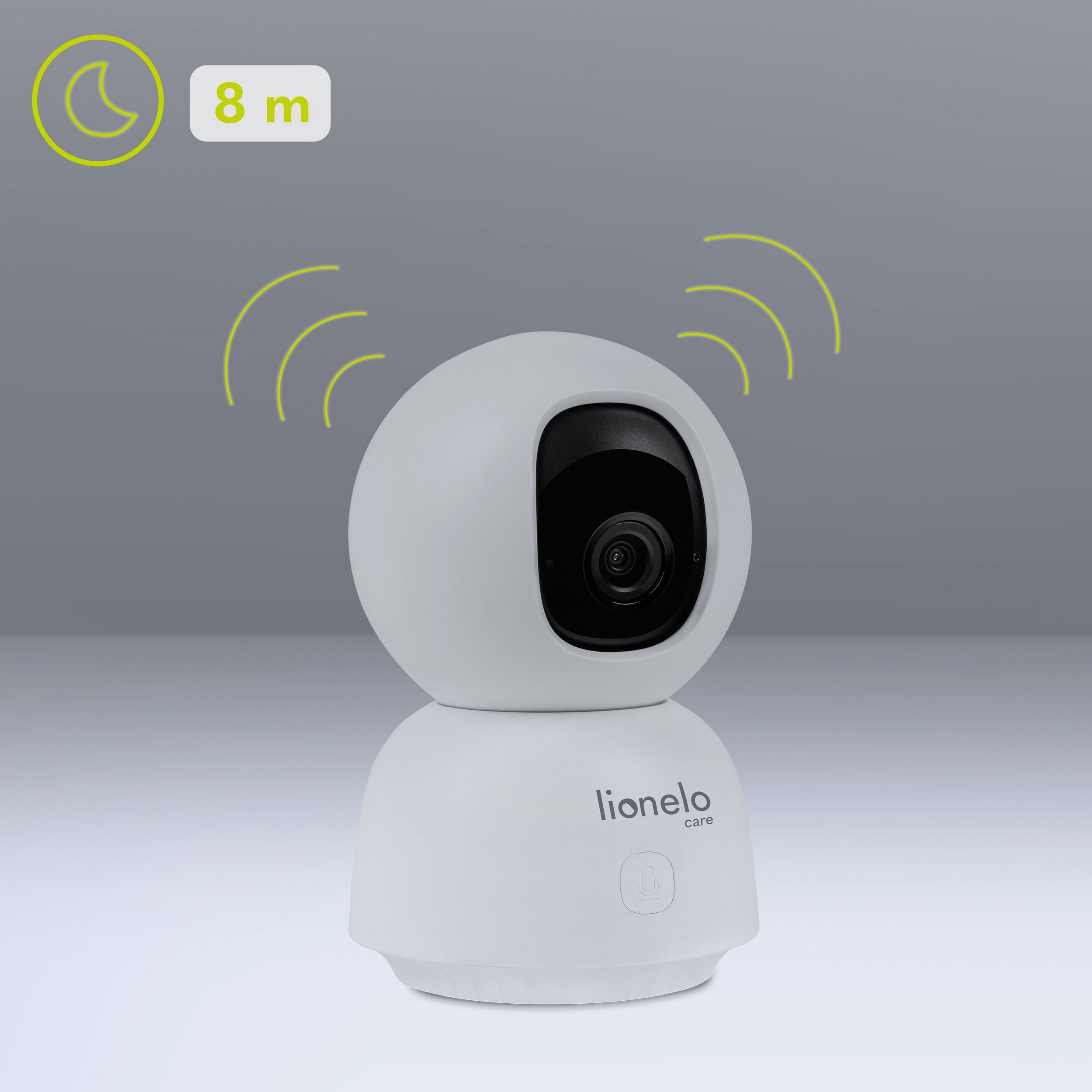 Babyline View can be operated via the dedicated lionelo Smart App, which allows not only viewing but also controlling the camera. This way, parents can keep an eye on their child using their smartphone. The app also enables taking photos and videos, as well as sharing the view with more than one smartphone – the image can be shared with a second parent or caregiver. The AI ​​function ensures that the camera tracks the child’s movements, guaranteeing that your child is always in view. And the Wi-Fi connection ensures unlimited range.
