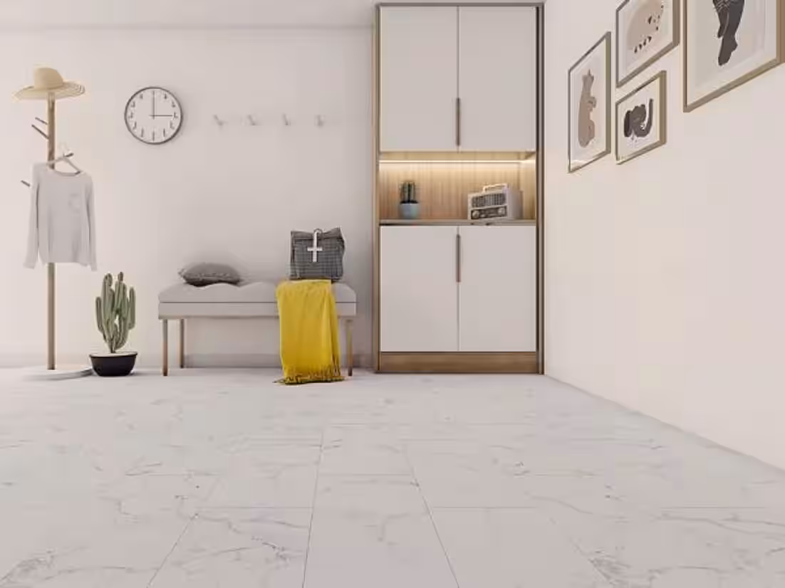 Tiles have a long tradition and are still very much in vogue. They are standard in many bathrooms and kitchens around the world. This isn’t surprising, given their exceptional durability and suitability for damp environments. However, the new tiles from CHECK one are truly innovative, offering both visual appeal and superior quality, along with integrated impact sound insulation. STANDARD COLLECTION | Tiles with integrated impact sound insulation. Tiles with integrated impact sound insulation are something truly special, especially when they reduce impact noise by up to 19 dB. This is pure luxury and significantly enhances living comfort. But what does this mean for the price? Does the integrated impact sound insulation affect it? On the contrary! Compared to ceramic tiles, the new tiles with integrated impact sound insulation from CHECK one are even more affordable. A major advantage of these new tiles with integrated impact sound insulation is that you don’t need a professional tiler to install them. Thanks to the click system and integrated sound-absorbing underlay, even inexperienced DIYers can easily install these 620 x 310 x 5 mm tiles. Rated for use class 33, they can withstand even heavy loads, making them ideal for medium-sized commercial applications. And of course, they offer the same advantages all tiles should: they are easy to care for and quick to clean. When installed in damp areas, the liquids typically encountered there can be wiped away quickly and easily. But being more affordable doesn’t mean sacrificing visual appeal. Quite the opposite, in fact. CHECK one has created a stunningly realistic stone-look super-matte tile, available in both marble and Botticino finishes. The 4V-groove further emphasizes the unique character of each individual tile. FEATURES Product type: Vinyl flooring Brand: CHECK one Item: 2140 Bern Botticino incl. impact sound insulation Item: 2141 Grillo Botticino incl. impact sound insulation Item: 2142 Alma Marble incl. impact sound insulation Item: 2143 Agora Marble incl. impact sound insulation Dimensions: 620 x 310 mm Thickness: 5.0 mm Wear layer: 0.3 mm Usage class: 33 – intensive commercial use Joint pattern: micro 4V-groove (all around) Contents per package: 1.92 m² Panels per package: 10 Look: Tile (stone/ceramic/marble) Stone type: Limestone Plank format: Tile Color: Light Surface texture: Matte Installation method: Click Click system: Loc-Click Advantages: Abrasion-resistant, easy to clean, impact-resistant, durable, largely cigarette burn-resistant Properties: Suitable for underfloor heating, plasticizer-free core board Suitable for damp rooms: Yes Integrated impact sound insulation:Yes! Unbeatable price for this flooring. Mega quality at even lower prices. Easy installation thanks to the click system. Includes impact sound insulation. We always have other vinyl and laminate flooring options in stock. Feel free to stop by and see us. ATTENTION! This item will be delivered by freight carrier. The recipient is obligated to inspect the goods upon receipt for any externally visible damage or missing items and note these immediately on the carrier’s delivery slip. The carrier will contact you by phone to arrange a delivery date. You can also arrange your preferred date directly with the carrier by phone. Please ensure you provide the correct phone number.