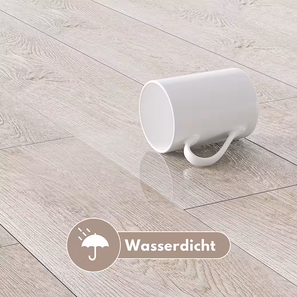 - Ideally suited for damp rooms – natural look thanks to the tactile wood structure – suitable for underfloor heating