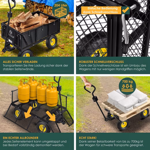 One of the outstanding features of this wagon is its flexibility and customizability . The fold-out and robust side panels allow for easy loading and unloading . If needed, the side panels can be completely removed to create even more space. A quick-release fastener ensures secure and easy closure of the side panels