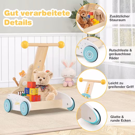 This wooden baby walker combines fun and functionality with a cake-shaped design and an interactive activity panel featuring rotating gears and various blocks in different shapes, such as a bear and a strawberry. The 3-stage adjustable handle grows with your child and promotes healthy walking habits, while the pyramid structure ensures safety and stability. Perfect for children aged 1 and up, this walker is not just a toy, but a companion that stimulates creativity, develops motor skills, and makes learning an exciting adventure.
