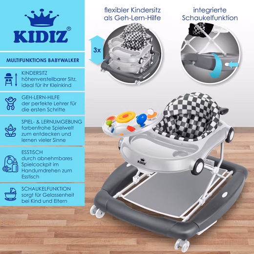 - Whether as a child seat, walking aid, play and learning environment, dining table or rocking chair – with the KIDIZ baby walker you have all options in one device.
