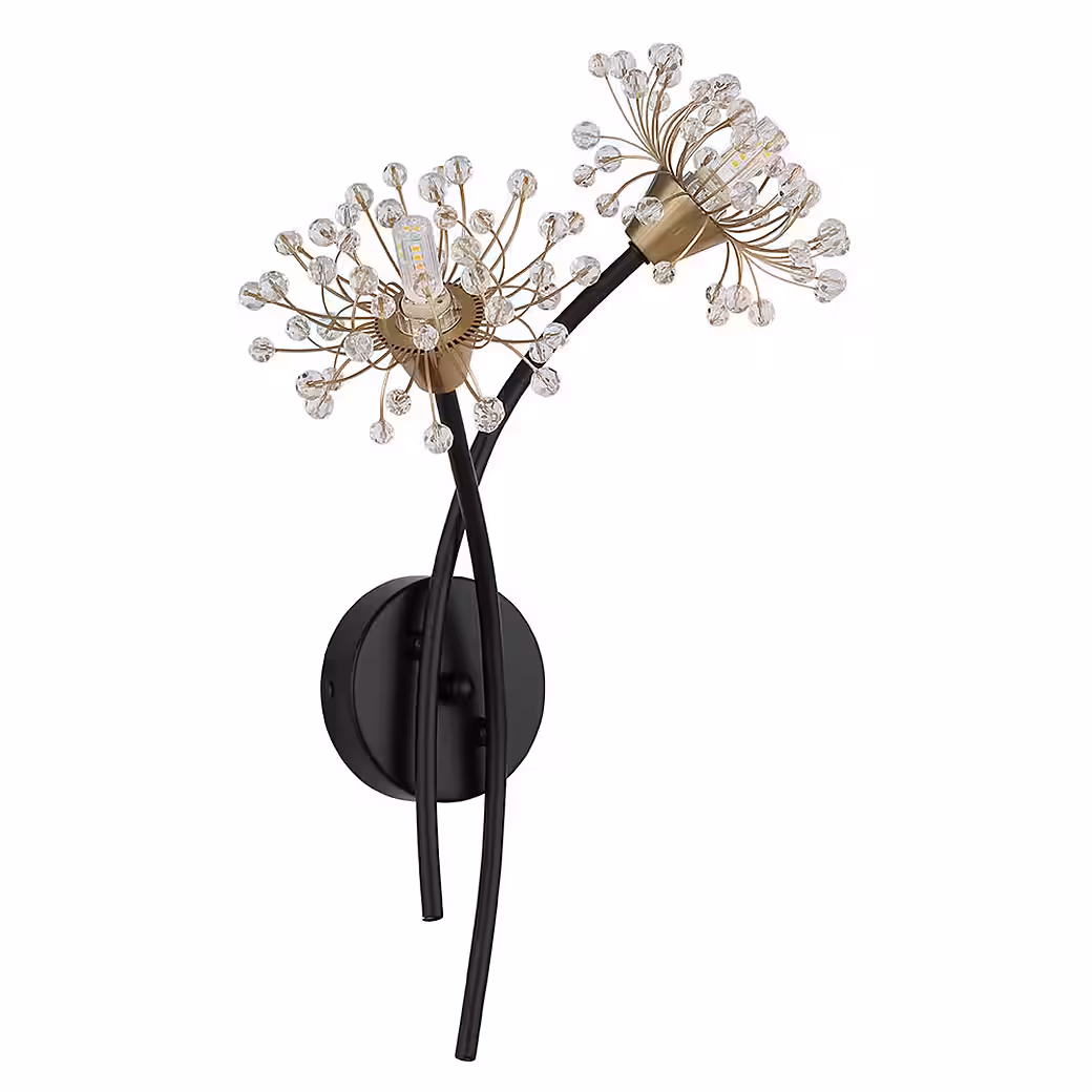 - EXCEPTIONAL DESIGN: This artistic wall light captivates with two flower-like light heads featuring clear acrylic crystals that resemble sparkling blossoms and add a special touch to the room.