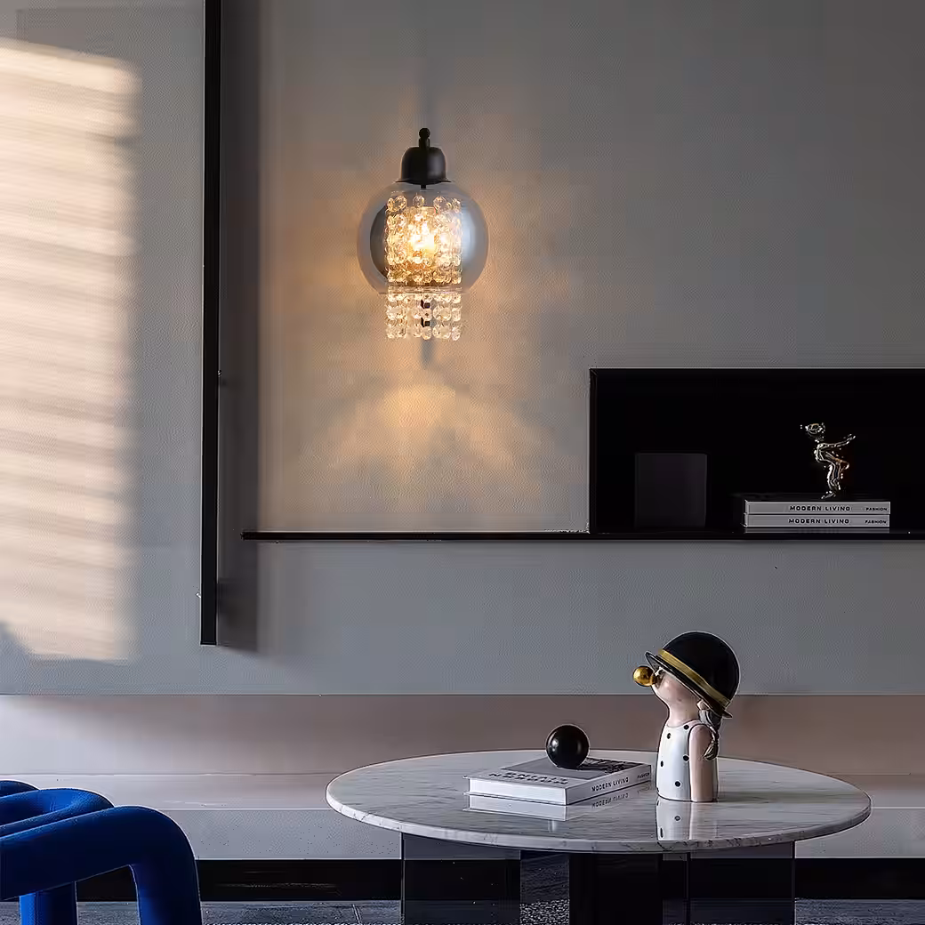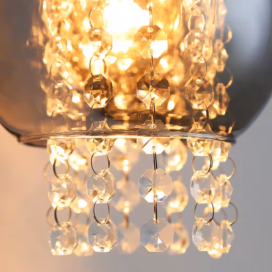 Be the first to review “Wall light, smoke grey, glass globe, crystal, E27, indoor bedroom, modern hallway lamp”