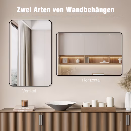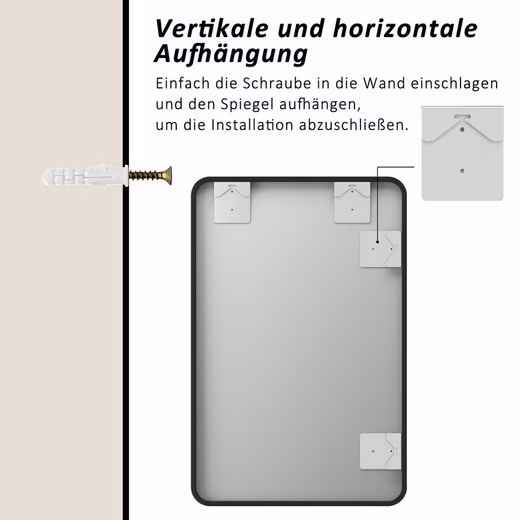 - hanging, wall leaning:Â You can hang the wall mirror or place it on the floor as desired. You can also hang the mirror on the wall to save space. You can mount the mirror horizontally or vertically according to your wishes.