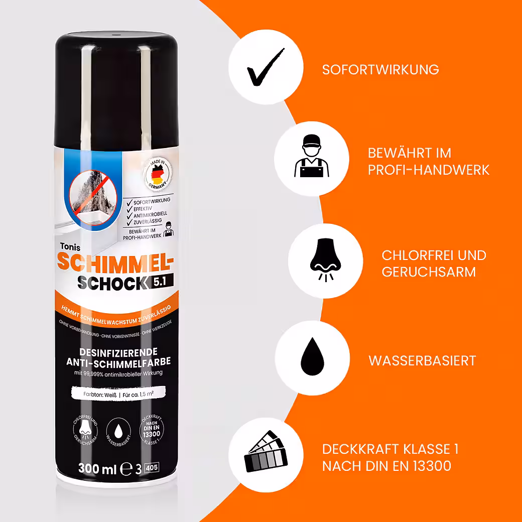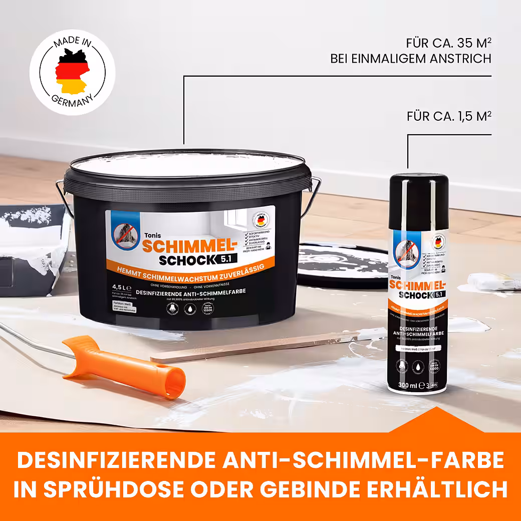 • 99.999% ANTIMICROBIAL EFFECTIVE DECIDES WAR ON MOLD – Ideal against mold stains on white walls and ceilings. Tonis MOLD SHOCK 5.1 works effectively and reliably.