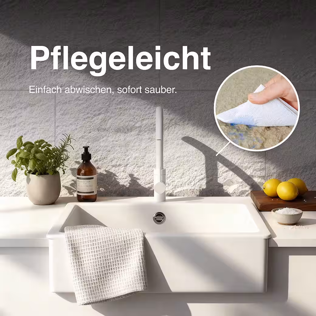 Polyurethane (PU) is the material from which these wall panels are made. PU is known for its lightness and impressive robustness. The panels are resistant to moisture, mold, and insects, making them ideal for all interior spaces, including bathrooms and kitchens. PU is also a very durable material that, unlike real stone, does not crumble or crack. The use of PU makes the panels easy to handle, which significantly simplifies installation and adjustment.
