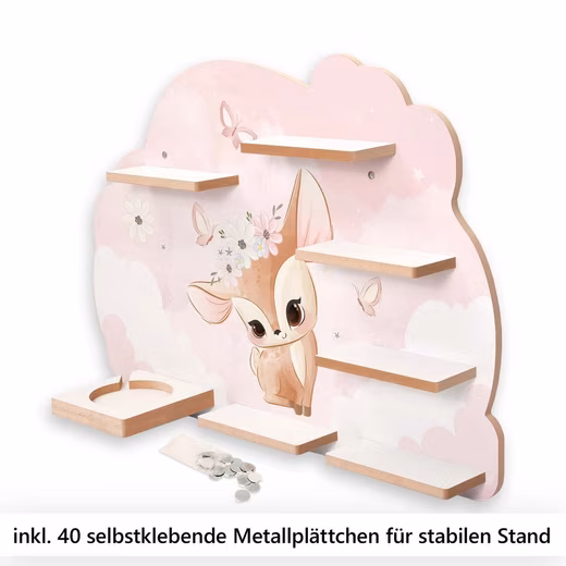 - Charming shelf with cute deer motif for Tonie box and figures | Size: 59 x 41 cm | 10 mm MDF | incl. 40 self-adhesive metal plates for magnet. Liability of the Tonies