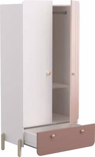 Can’t find your favourite blouse or shirt in the chaos of clothes? That won’t happen to you with this wardrobe »Jade« from Demeyere GROUP. The doors can be opened and closed independently. This is handy if you are putting together an outfit and want to keep track of the entire content. The varnish on the surface is intended to protect the wood from moisture and dirt. The practical button handles are durable and underline the style. The prefabricated parts are easy to assemble using the assembly instructions.