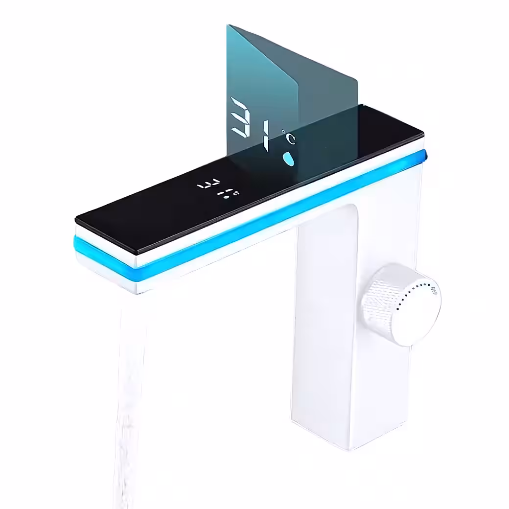 Experience the comfort and elegance of our high-quality brass digital faucet with temperature sensing. This faucet is ideal for your bathroom or kitchen sink and offers both hot and cold water options.