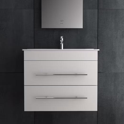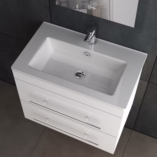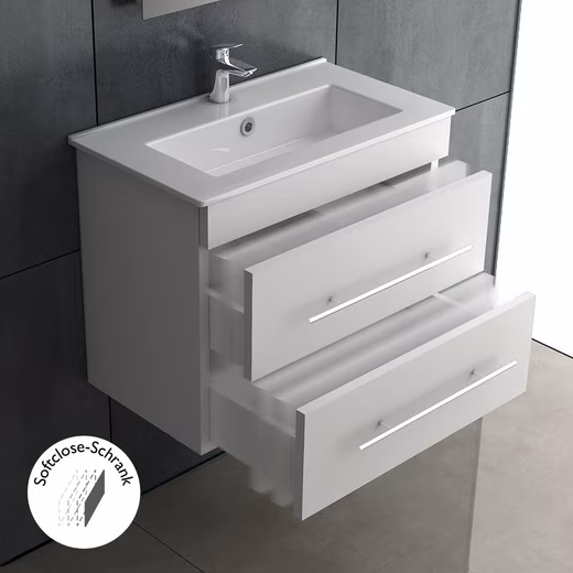 The bright white bathroom cabinet not only offers aesthetic appeal, but also creates a well-organized space for your bathroom accessories. The set is equipped with two drawers that have a soft close function to ensure silent closing. They offer enough storage space to store your bathroom utensils neatly and space-savingly.