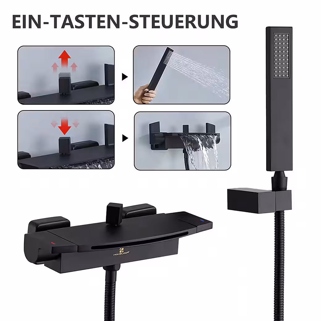 - Push or lift the control knob on the bathtub faucet to conveniently switch from the bathtub to the hand shower.