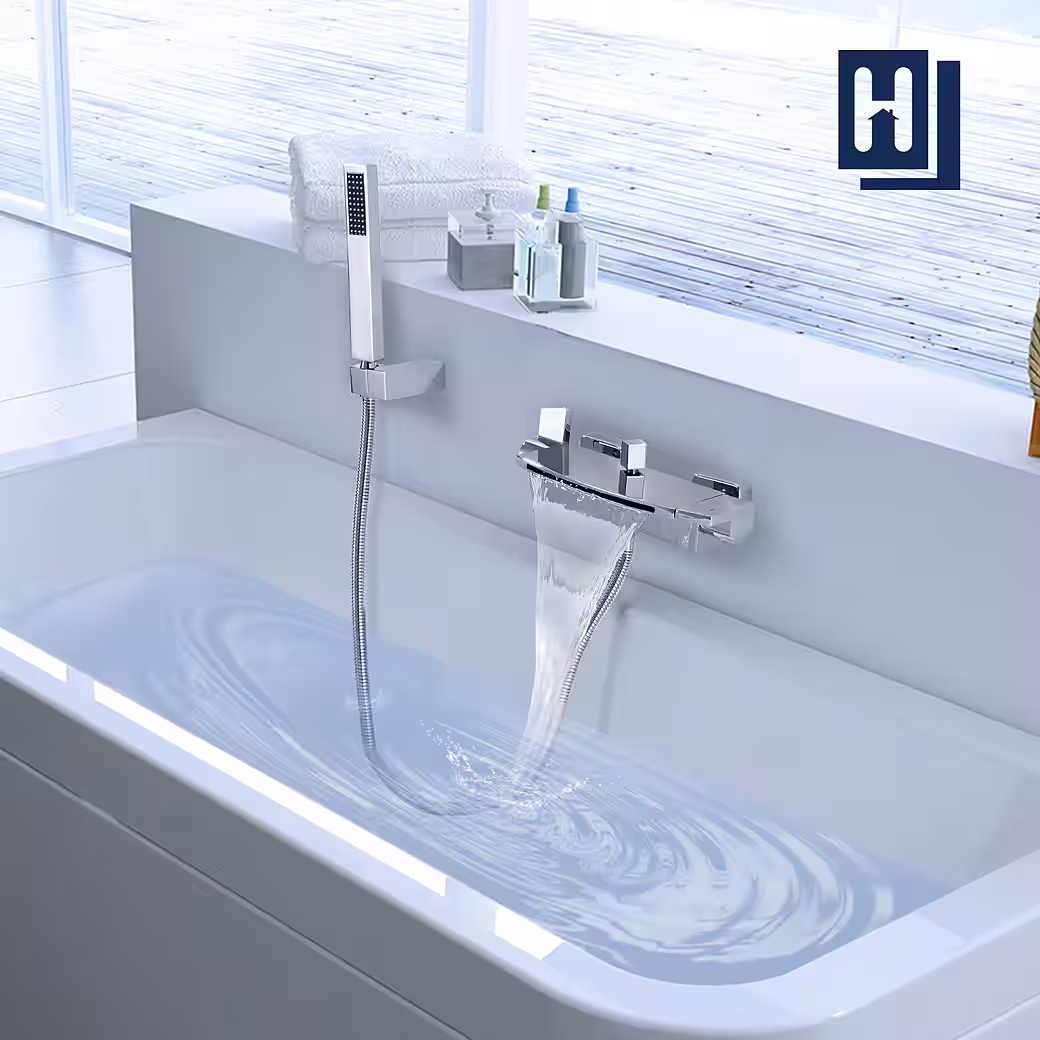- Double handles make it easy to adjust the temperature and water flow of the bathtub faucet.