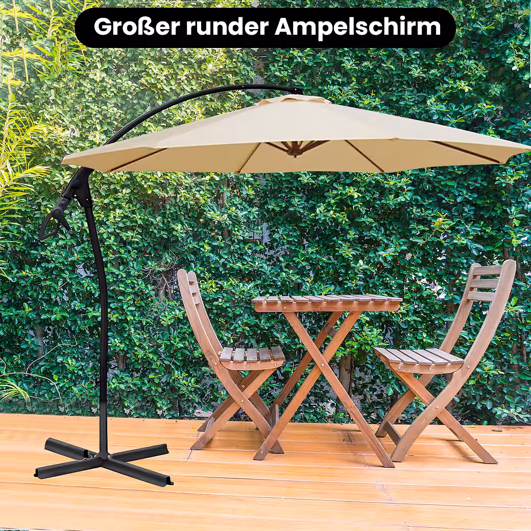 - Large cantilever parasol approx. 3.0 m in luxury configuration with the PROFI tensioning system.