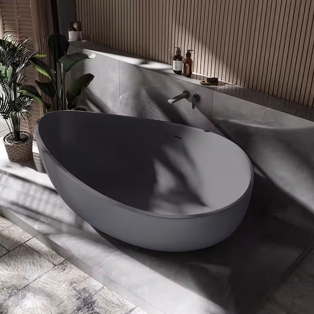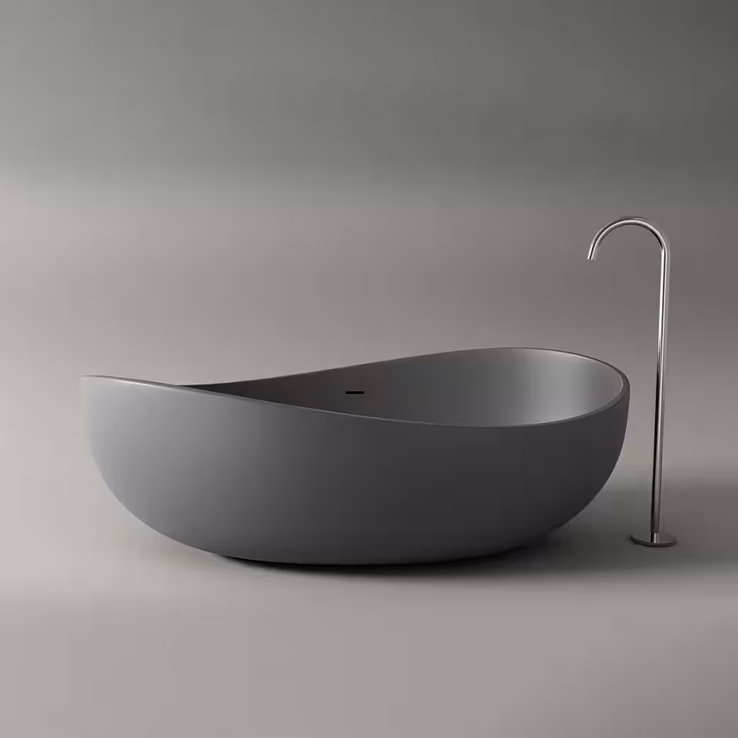 Wave Stone designer freestanding bathtub made of solid stone cast mineral material in matte grey