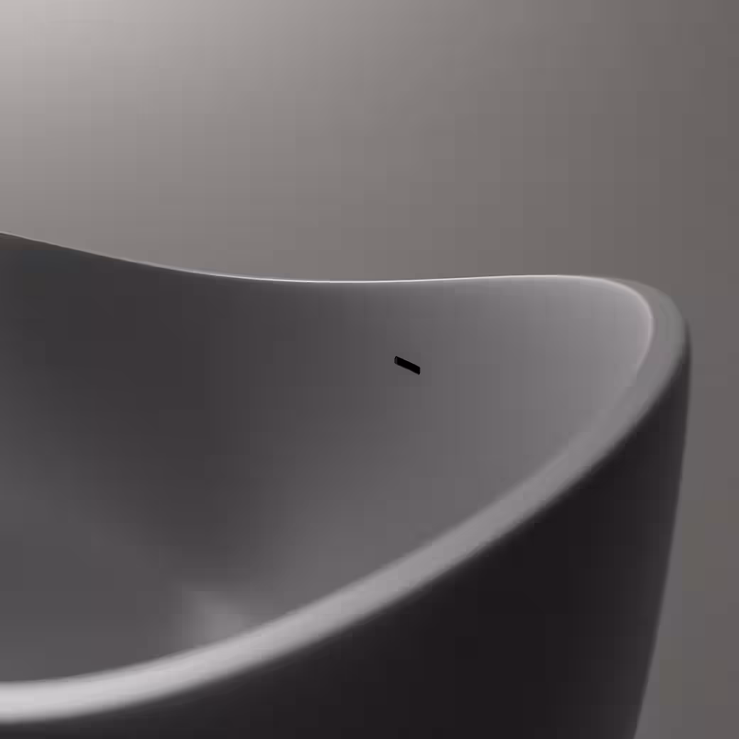 The freestanding Wave bathtub is a true highlight in a large and spacious bathroom. Its wave-like design with a matte grey finish transforms your bathroom into an unparalleled wellness oasis.