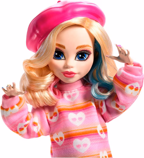 Pink has never been so spookily chic! This Enid Sinclair doll reimagines Wednesday’s bubbly roommate and her vibrant style through Monster High glasses.