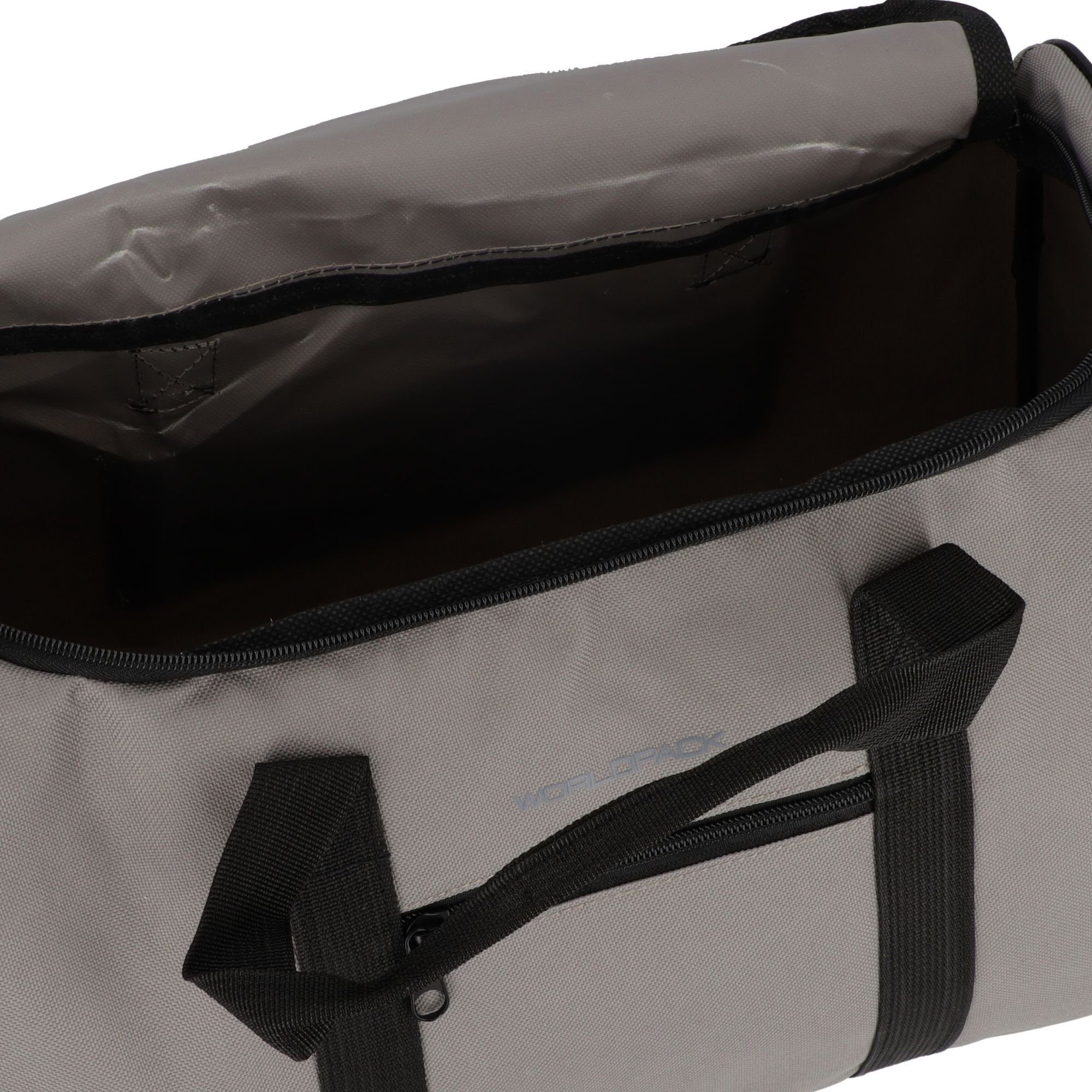 This small, cabin-sized weekender travel bag features a minimalist style and is characterized by its waterproof material and practical size. The removable shoulder strap is easily and continuously adjustable.