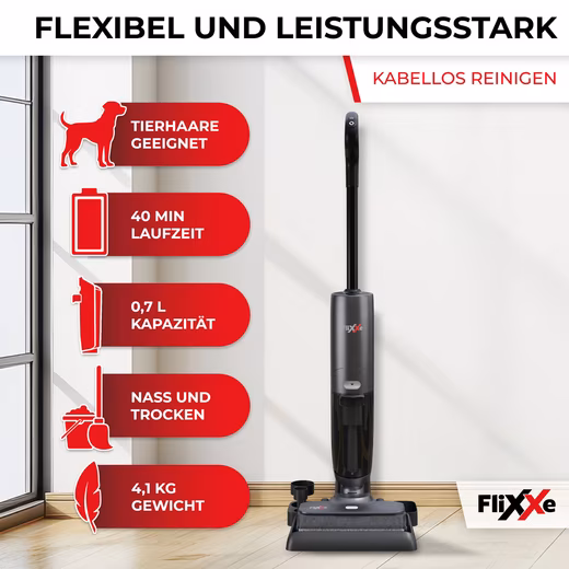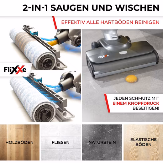 - Powerful 200W motor & 2-in-1 vacuuming & mopping: The cordless Flixxe X3 combines vacuuming and mopping, saving 50% time and cleaning your floors hygienically.