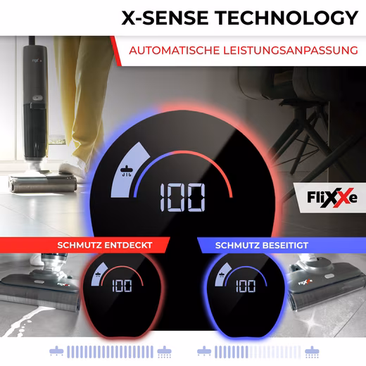 - X-Scan Technology – Automatic Adjustment: The X-Scan technology automatically adjusts suction power, water volume, and brush roller speed to the degree of soiling.