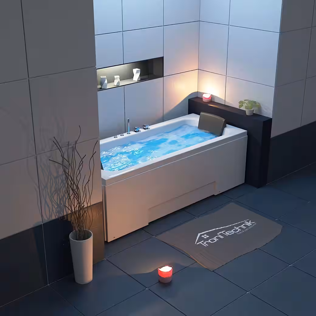 The IOS whirlpool bathtub features eight high-quality jets that can be continuously adjusted and removed if needed. A hydromassage (water/air system) provides a unique massage experience. Color light therapy offers additional well-being and is proven to have therapeutic benefits in medicine.