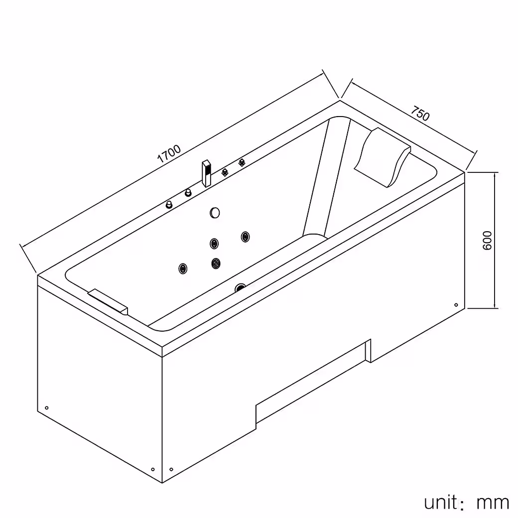 It is made of high-quality sanitary acrylic, reinforced with fiberglass mats. The extra-thick (3.8 mm) sanitary acrylic ensures the stability and durability of the tub surface and provides better insulation. The steel support frame with height-adjustable feet ensures a stable base. The integrated premium HT brand whirlpool pumps offer a long service life and high pumping capacity. The mixer taps are made of chrome-plated brass for long-lasting durability.