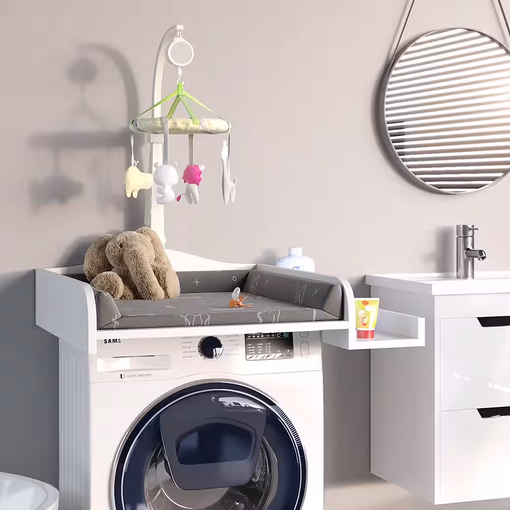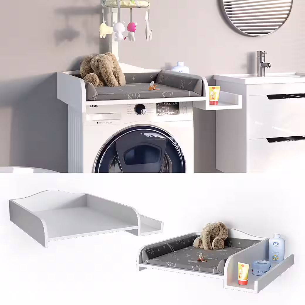 - The white changing table top is a side shelf that can be attached to both sides. In addition, overlaps in the washing machine are possible.