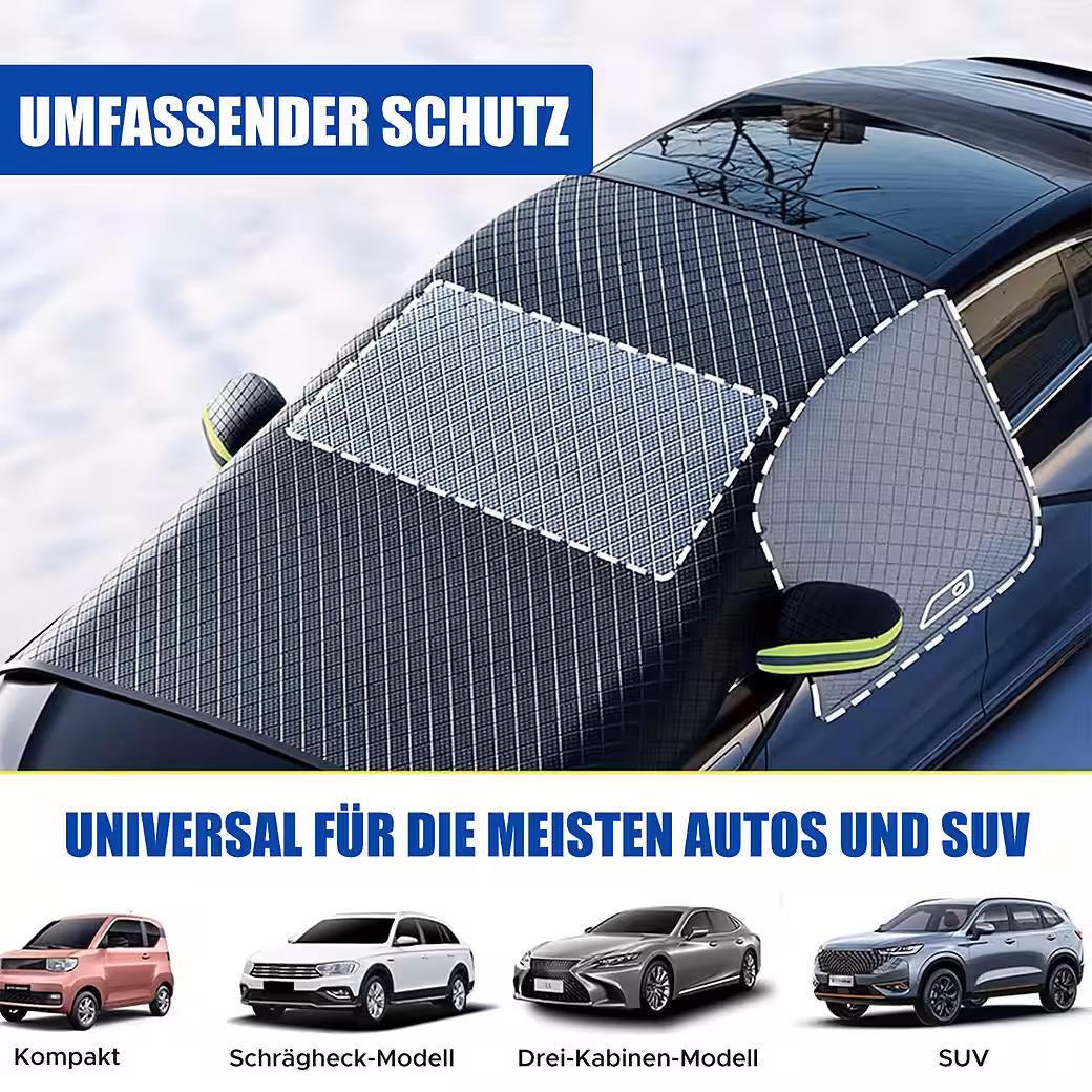 - With its generous dimensions of 259 x 114 cm, the cover offers complete protection for the windshield, side windows, door handles, windshield wipers and mirrors.