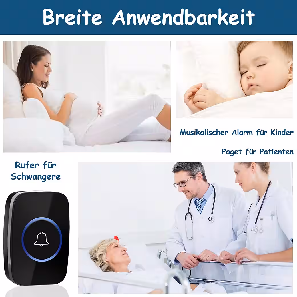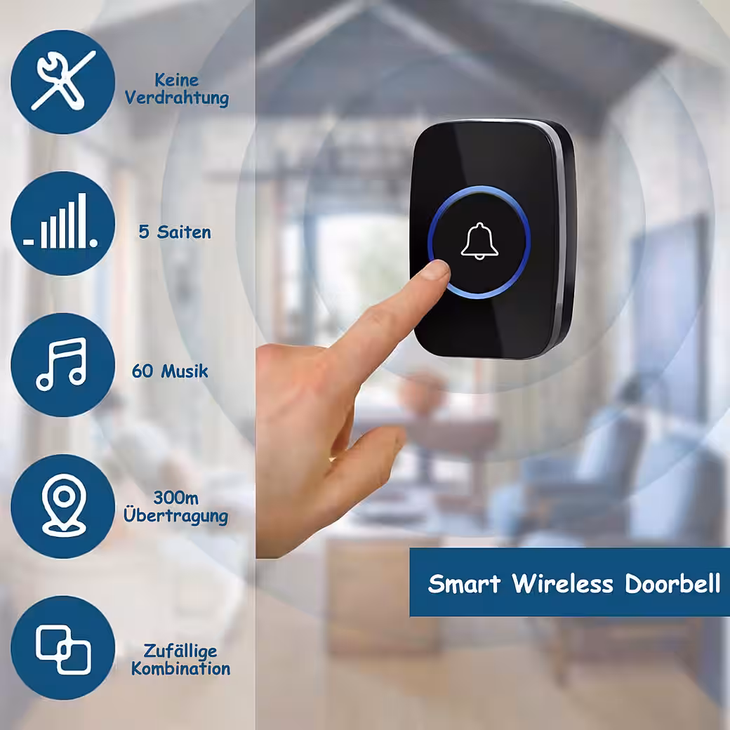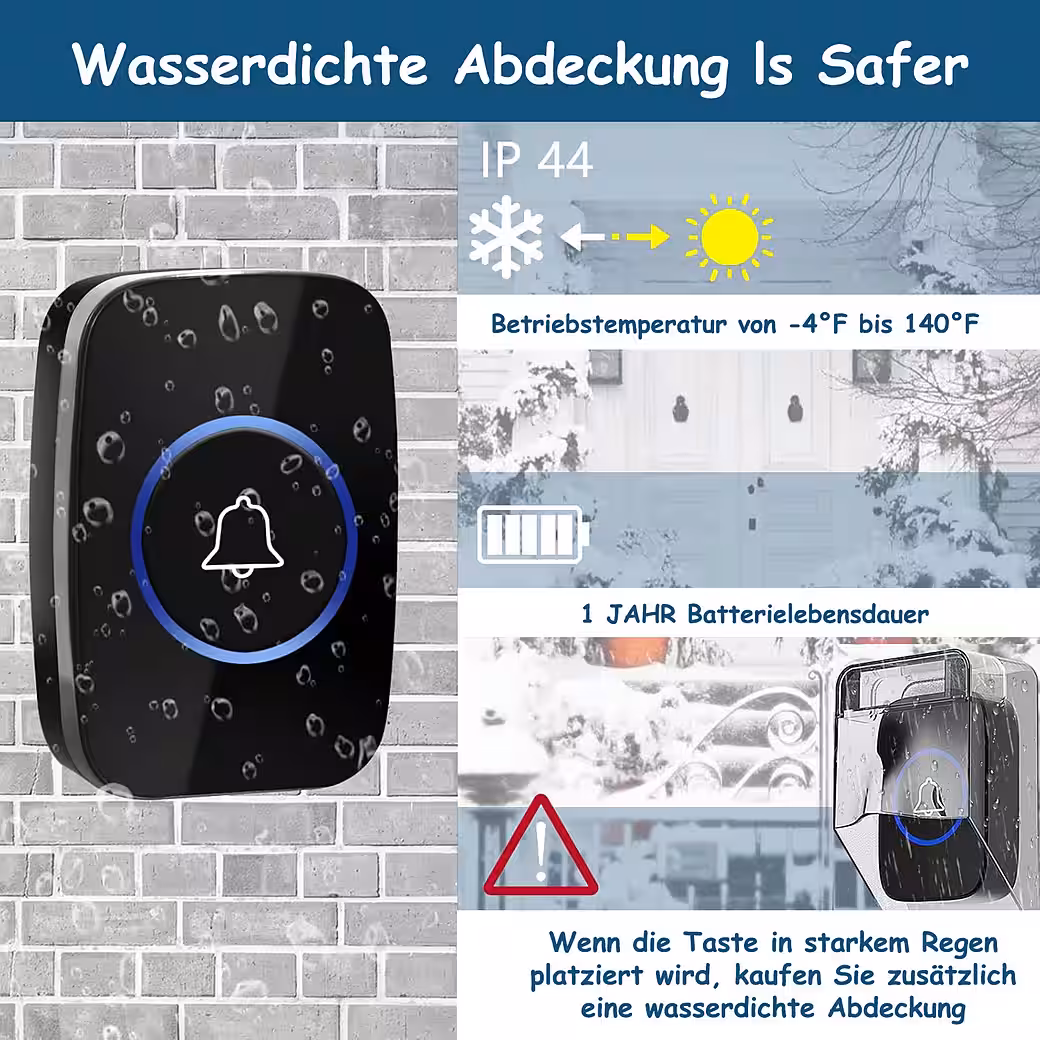 Wireless Doorbell, 300 Meters, Ring Doorbell, IP44 Waterproof