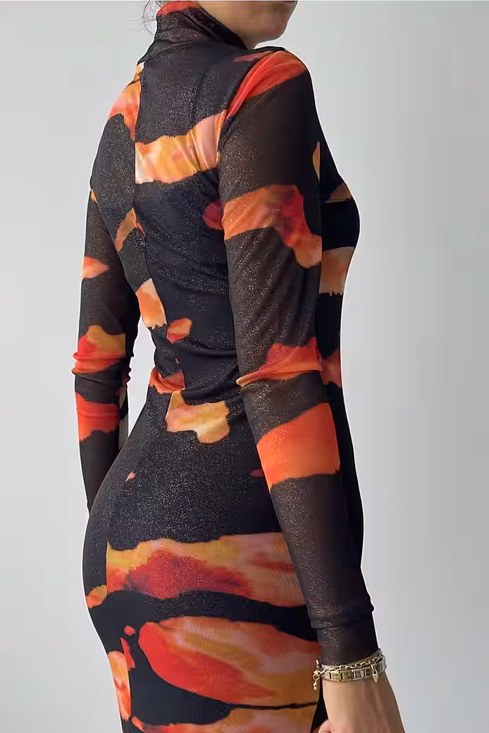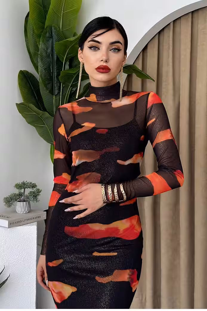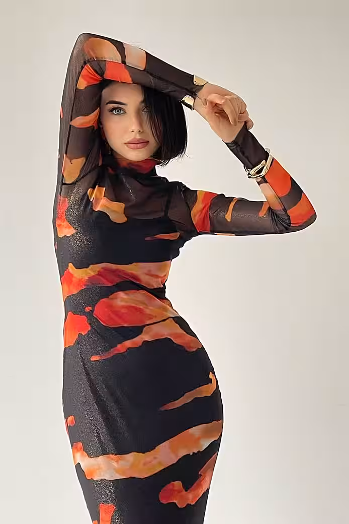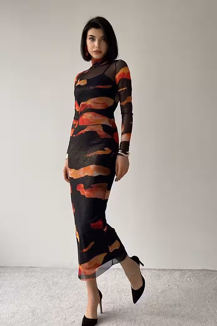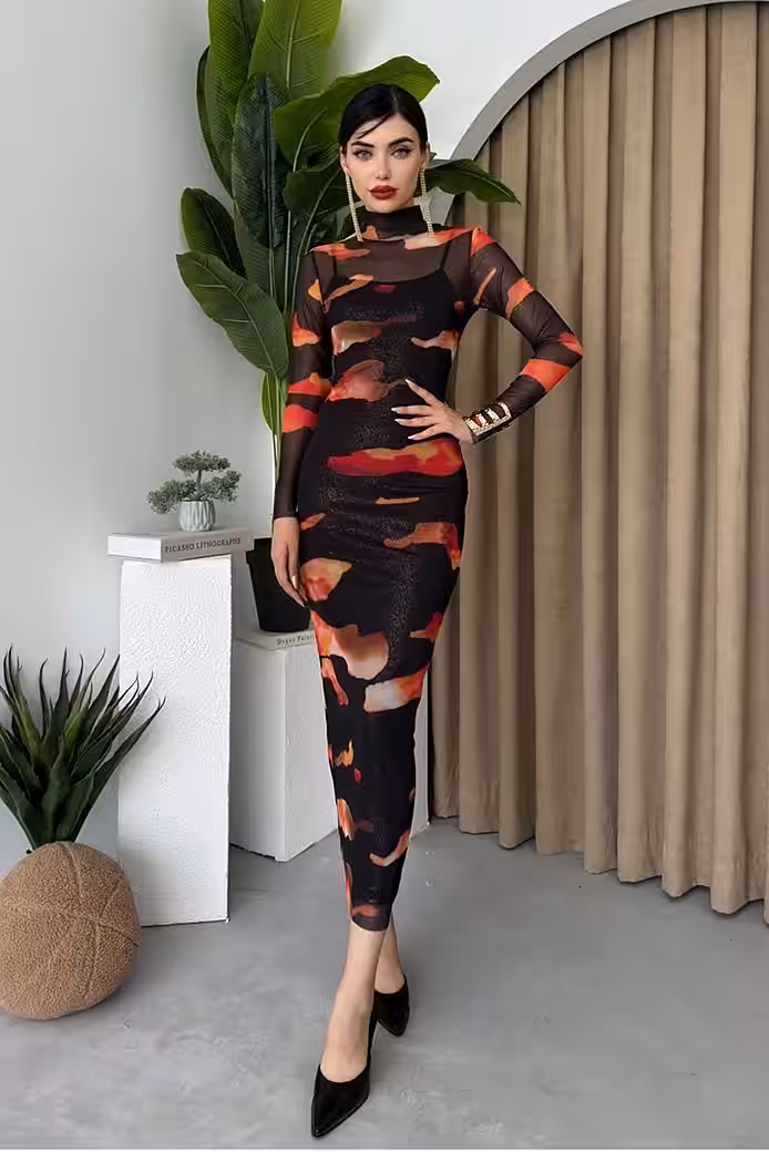The WOMAN VISION evening dress is an elegant maxi dress for women, distinguished by its flexible fabric and classic round neckline. The long sleeves make it particularly suitable for festive occasions during the cooler months. This dress combines comfort with a stylish appearance and is a perfect choice for special events.