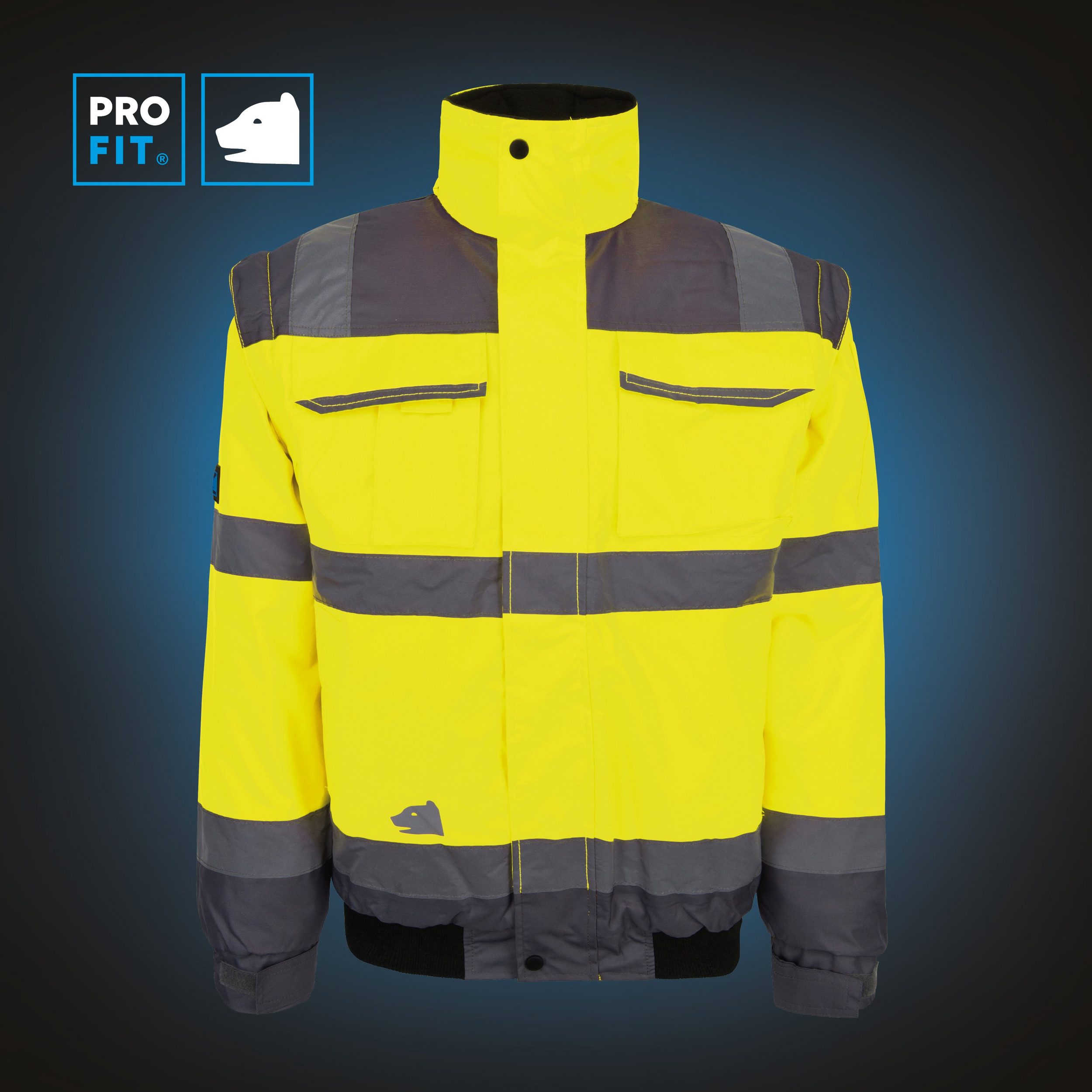 • High-visibility pilot jacket in striking neon yellow and grey. Offers high visibility and safety at work thanks to reflective stripes and shoulder reflective elements.
