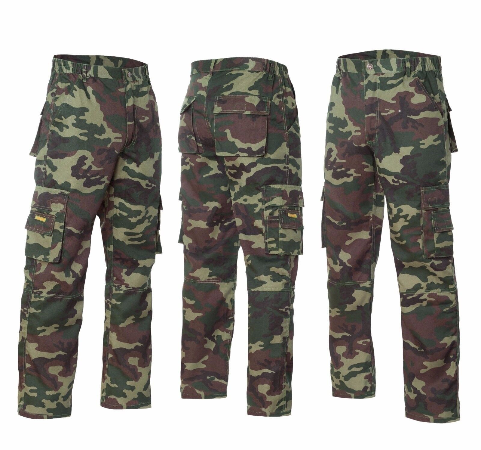 TRAMP cargo work trousers in camouflage with cargo pockets. Professional work trousers, especially recommended for the industrial, construction, and agricultural sectors. Fabric blend: 35% cotton / 65% polyester