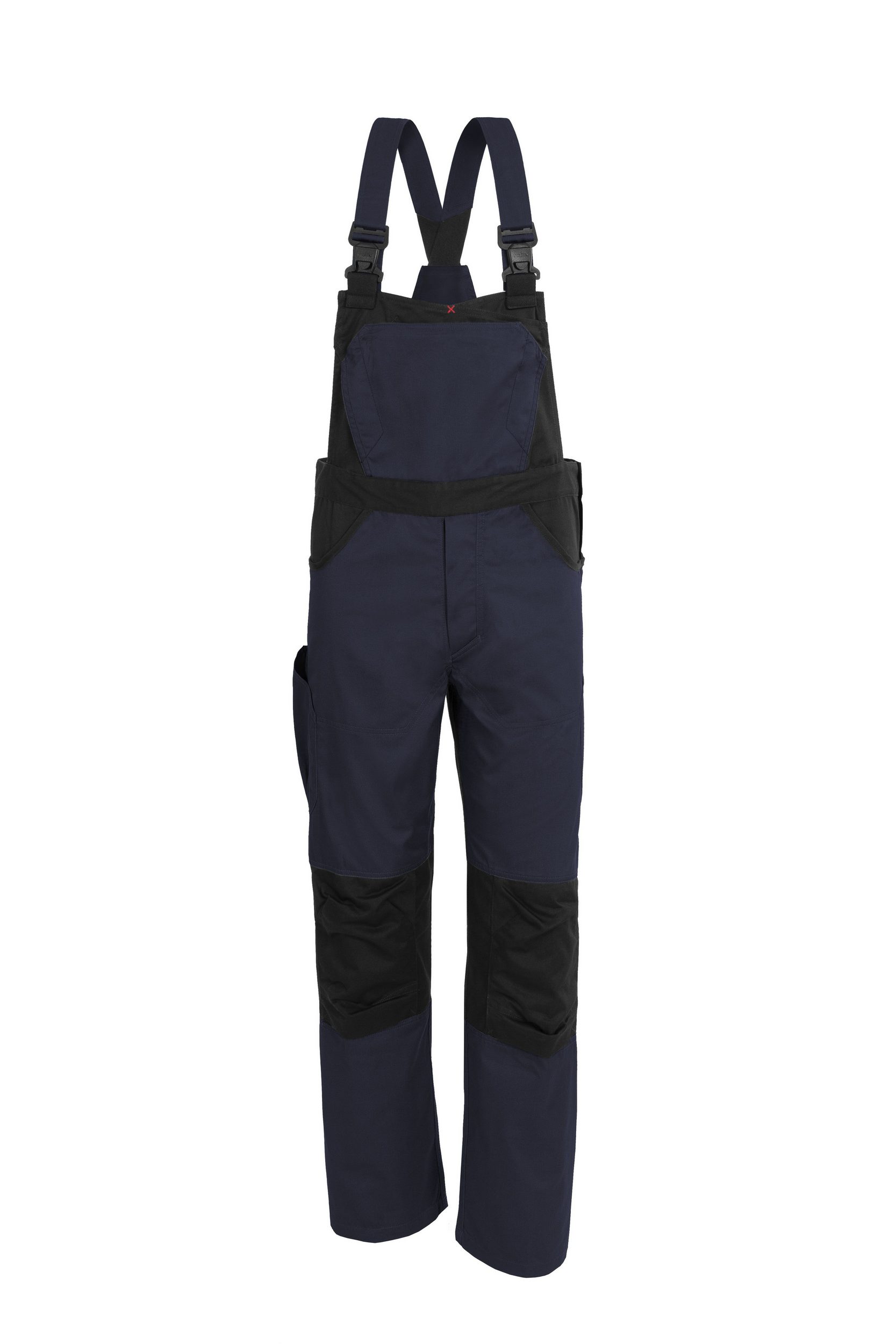 Extremely versatile work overalls. These overalls feature a classic look with modern elements. A sleek and dynamic appearance is achieved through a contemporary cut, angled lines, and discreet pockets. The work overalls offer ample storage space for tools and provide the necessary safety in everyday work. They are equipped with a simple bib including a patch pocket, secured with an internal plastic zipper, additional dividers for pen holders on both sides, a tool pocket on the right, and a hand pocket under the left suspender. Furthermore, there are two inset front pockets extending to the back, separated by side seams: a large back pocket on the right, reaching to the seat seam, and a smaller pocket on the left. Knee pad pockets with bottom insertion allow for the use of certified knee pads in combination with Qualitex knee pads (sold separately – item no.: 61936A 989). X-combinations. The X-Series can be ideally combined with numerous other Qualitex items, thus providing the perfect foundation for a professional appearance in corporate design. The color and design coordination with the established PRO-Series, as well as the complementary products from the PRO-WINTER line, offer scope for a broad product portfolio. Features: All our Qualitex workwear is finished with a durable coating that ensures excellent shape retention even after multiple wash cycles. We guarantee our customers high colorfastness through the use of high-quality dyes (vat dyes, naphol dyes) and continuous dyeing processes. The polyester content makes this fabric easier to care for than pure cotton. Our fabric is shrink-controlled according to DIN EN26330, max. 3% shrinkage. MATERIAL MIX: 65% Polyester | 35% Cotton, approx. 245 g/m²