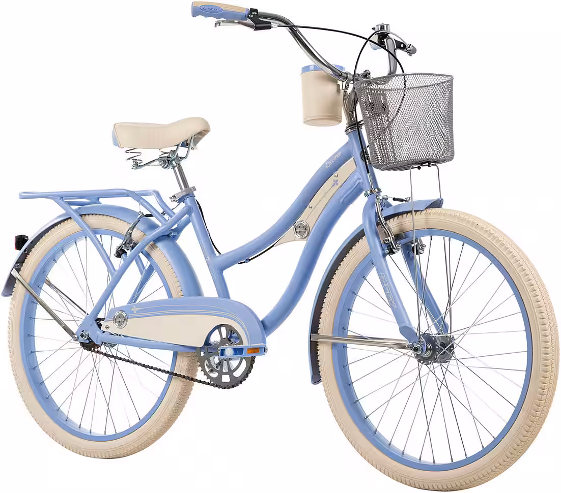 Relaxed rides and good times are guaranteed on the Huffy Deluxe Cruiser. This 24-inch cruiser bike has a light blue steel frame with fun accessories that make every ride a relaxing journey. With the handlebar basket, water bottle holder, and rear rack, you’re well-equipped for any adventure ahead – whatever it may be! This single-speed cruiser features front and rear steel cantilever brakes for optimal control and easy handling. Front and rear fenders keep you clean and dry, while reflectors ensure you remain visible even in low-light conditions. With this Huffy Deluxe Cruiser, your journey will be a pleasure.